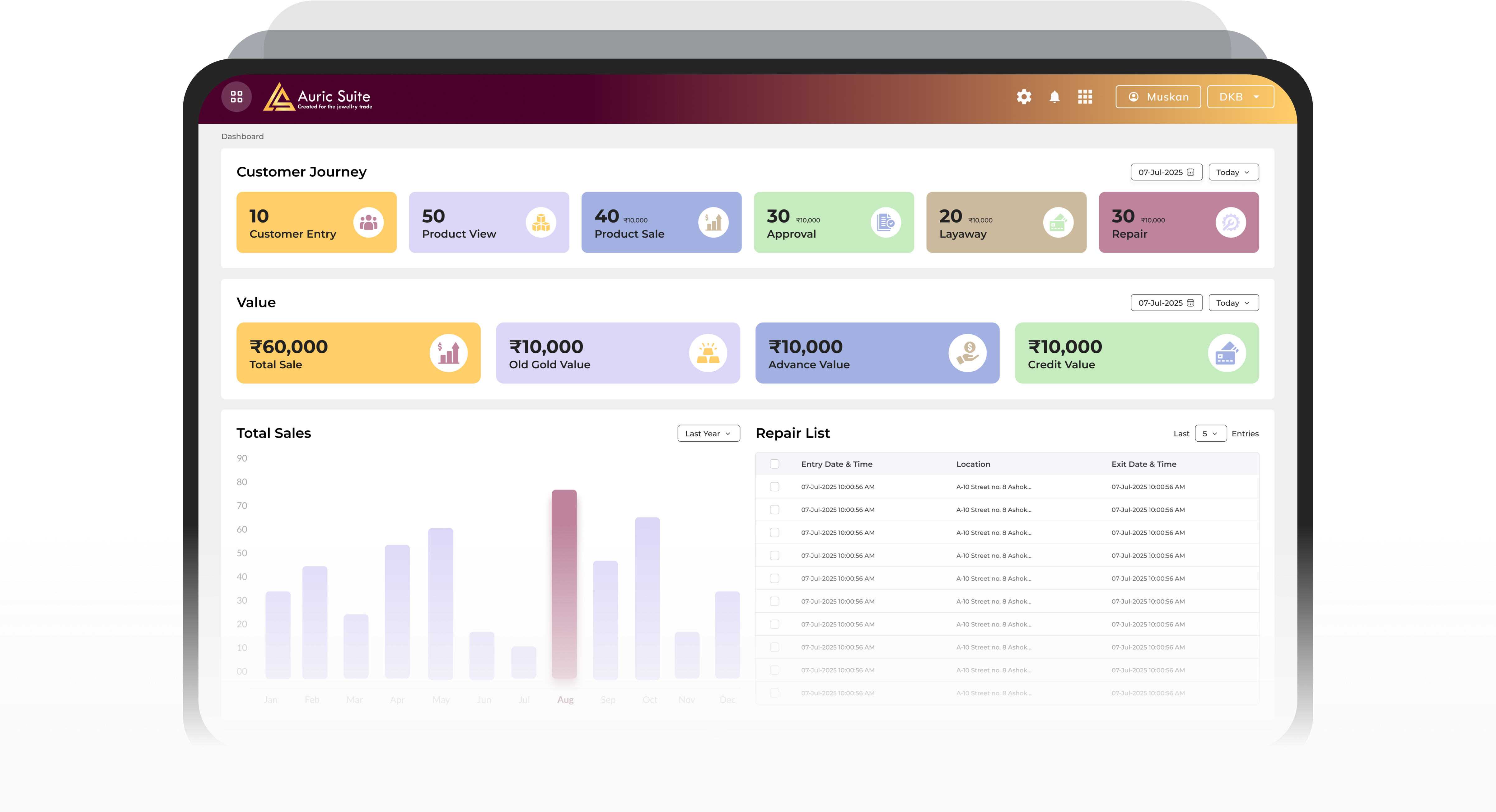Unlike generic systems, Auric Suite is built to handle karat-based inventory, metal rates, approvals, old gold purchases, and high-value transactions unique to the jewelry industry.